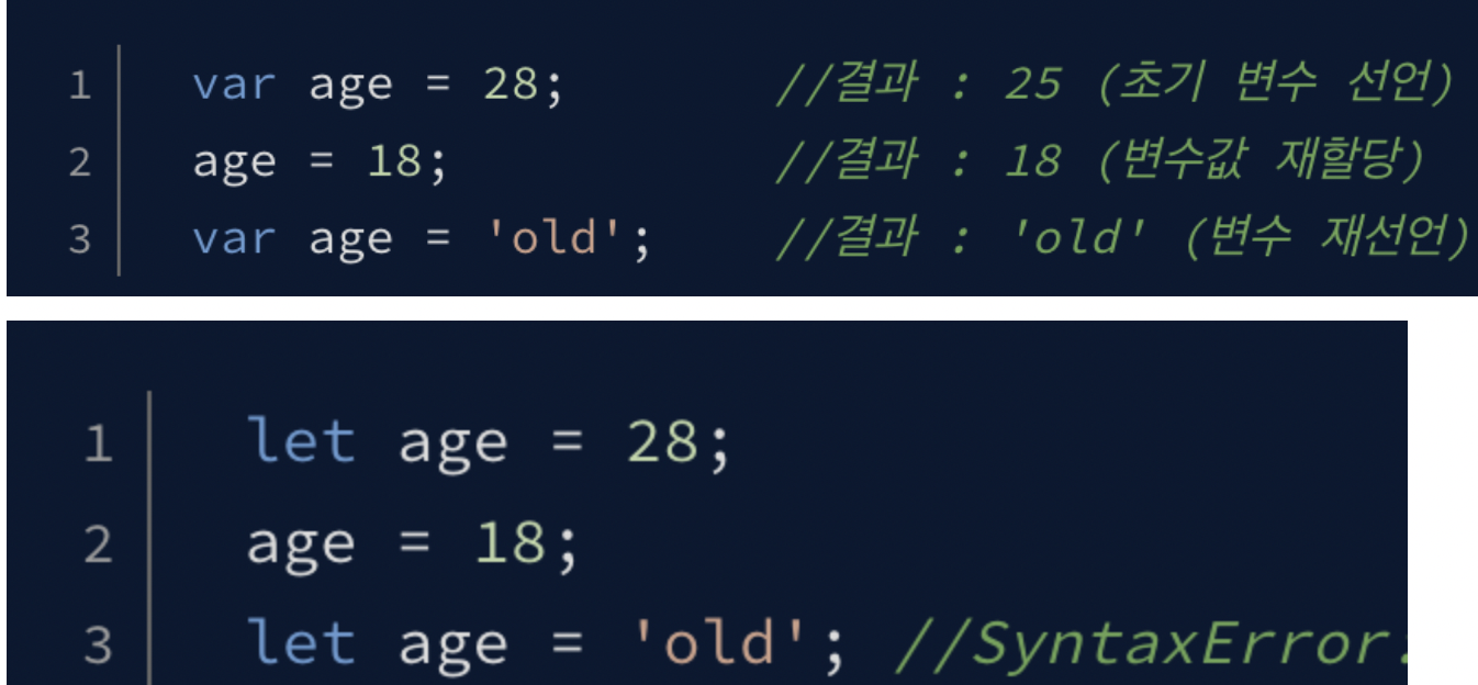 - let은 var과 달리 변수의 재할당을 허용하지 않아 재할당 문제를 해결해준다.