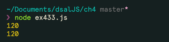 루프를 돌면서 각 숫자를 꺼내 결과를 곱해가면 120이 나온다.