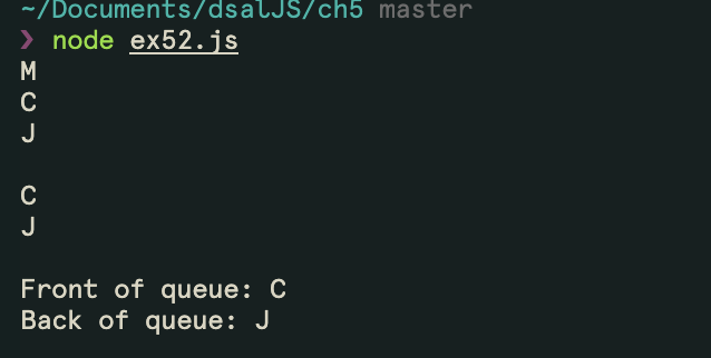 console.log("Front of queue: " + q.front());